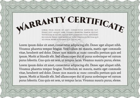 Sample Warranty certificate. Very Detailed. It includes background. Complex design.