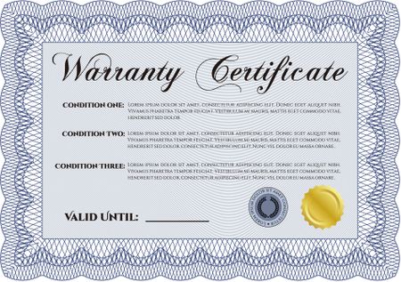 Sample Warranty template. Complex frame. Perfect style. Easy to print.