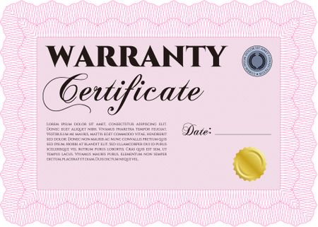 Sample Warranty template. With great quality guilloche pattern. Retro design.