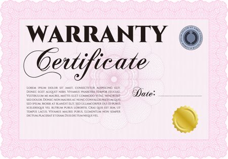 Sample Warranty template. With great quality guilloche pattern. Sophisticated design.
