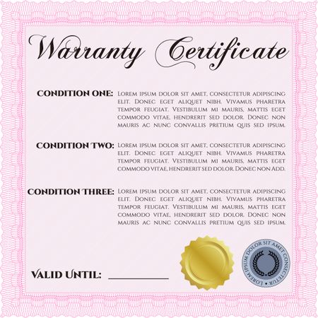Sample Warranty template. Perfect style. With sample text. Complex border design.