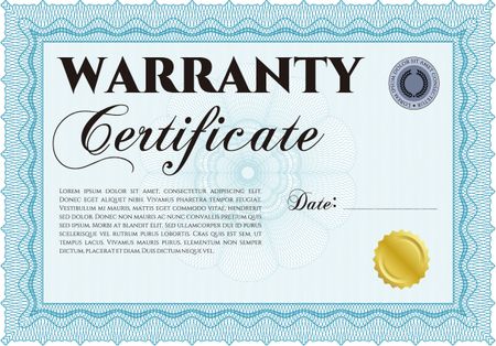 Sample Warranty template. Vector illustration. With complex background. With sample text.