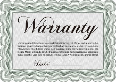 Sample Warranty. Vector illustration. With background. Complex border design.