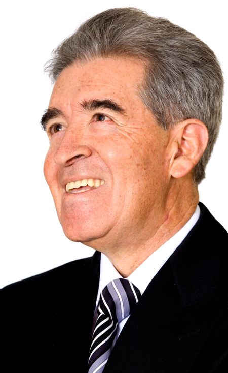 Senior business man portrait full of expectations - isolated over a white background