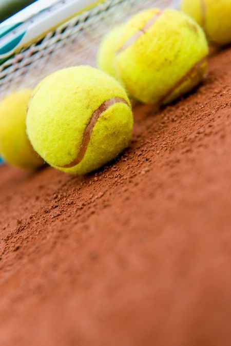 Set of tennis balls at the clay court