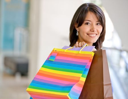Shopping woman carrying some bags at a mall