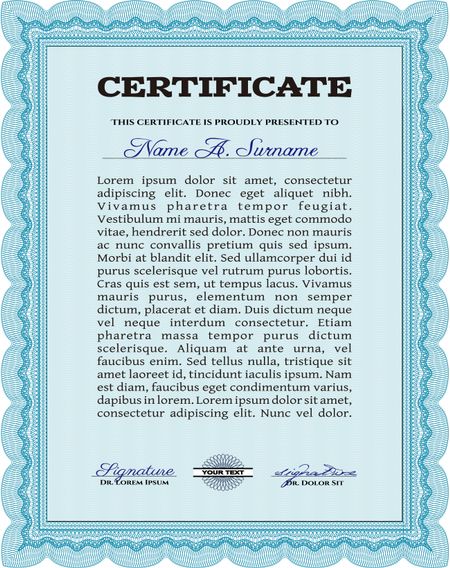 Sky blue vertical Certificate / Diploma of completion / Design template.