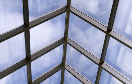 Skylight with reflections and blue sky