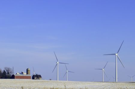 Skyscrapers in the countryside: Wind turbines on wintry farmland in Illinois