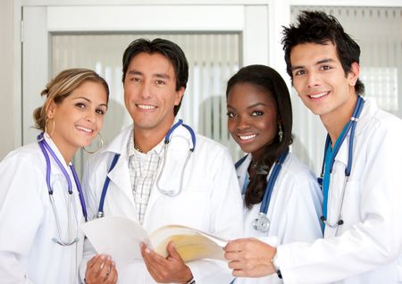 small group of doctors standing together in a hospital room