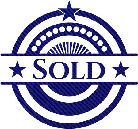 Sold emblem with denim high quality background