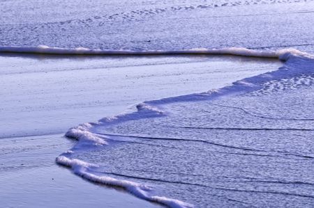 Soothing view of saltwater spreading across sandy beach shortly after sunrise in Cape Cod