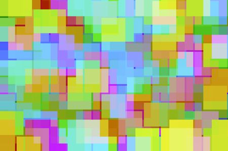 Splashy mosaic abstract of squares overlapping for 3-D effect, with tropical pastels