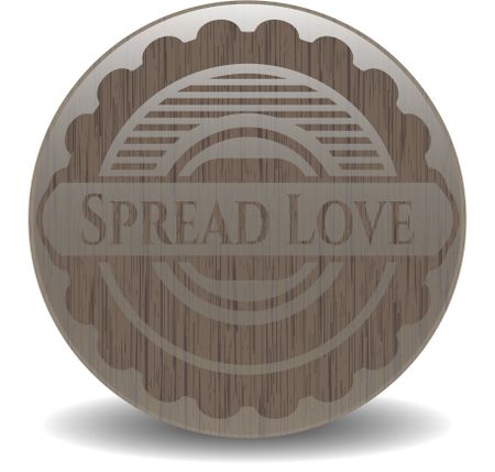 Spread Love badge with wood background