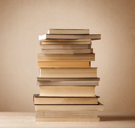 A stack of old books with vintage background