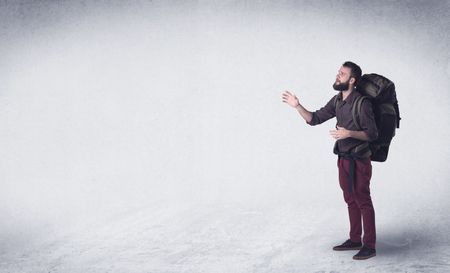 Standing handsome young man with a backpack