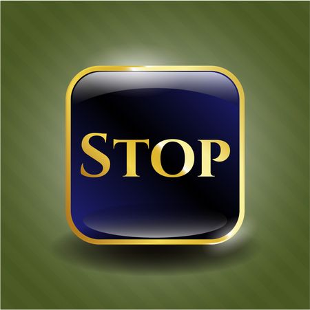 Stop blue shiny badge with green background