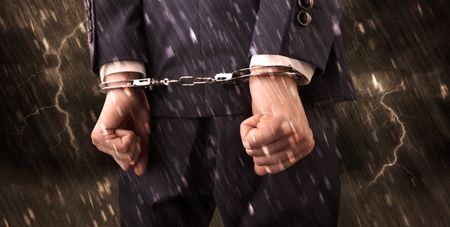 Stormy bad day concept with close handcuffed elegant man