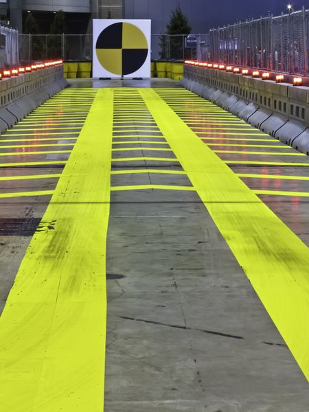 Straight and narrow and yellow -- indoor test track for attendees of auto show