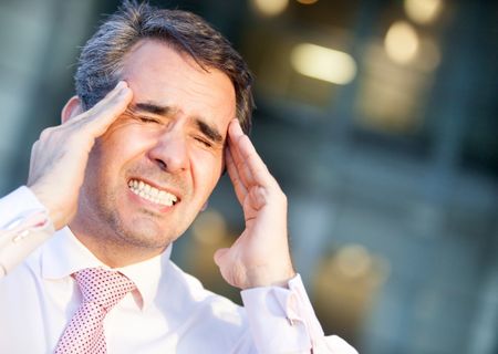 Stressed business man with a headache at the office