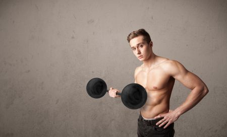 Strong muscular man lifting weights