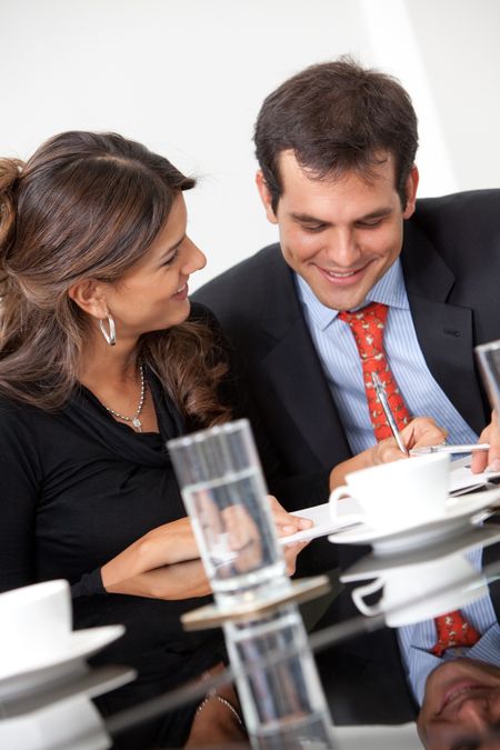 Successful business couple at the office smiling