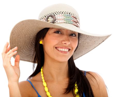Summery woman wearing a hat isolated over white