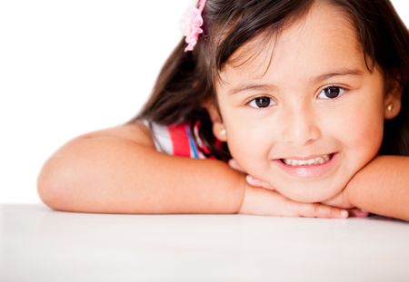 Sweet little girl smiling - isolated over a white background