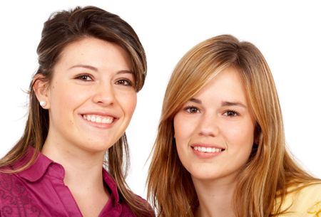 teenage girls smiling in a portrait isolated over a white background