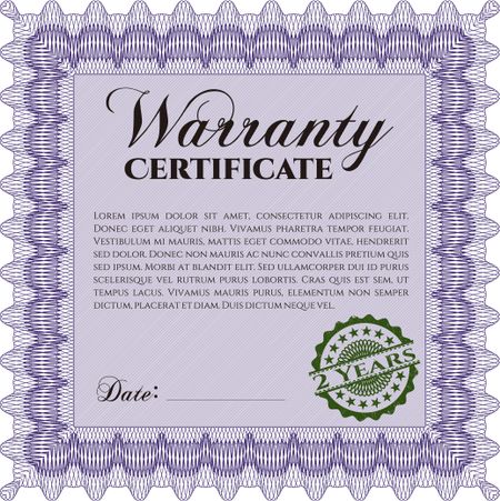 Template Warranty certificate. Border, frame. With quality background. Superior design.