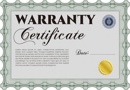 Template Warranty certificate. Easy to print. With sample text. Very Detailed.