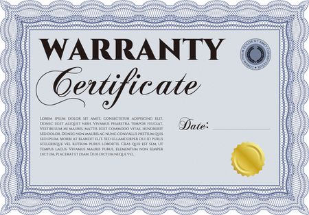 Template Warranty certificate. Vector illustration. Complex design. With background.