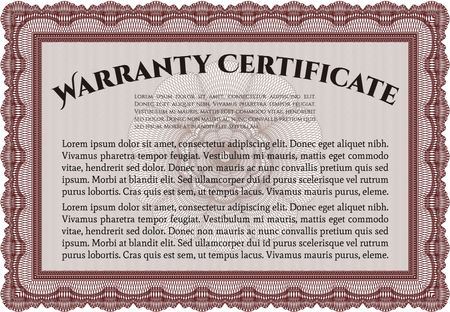 Template Warranty certificate. Vector illustration. Complex frame design. Easy to print.