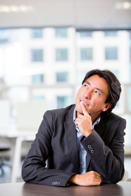Thoughtful business man at the office looking up