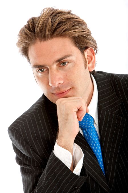 Thoughtful businessman portrait isolated on white