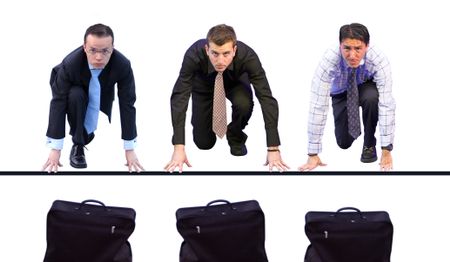 three business men having a race for their briefcases