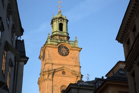 Tower of Storkyrkan Church, Gamla Stan Island; Stockholm; Sweden; Europe