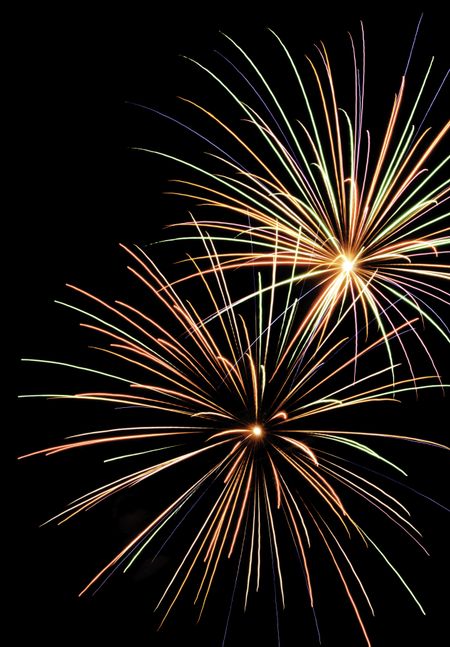 Two bursts of multicolored fireworks
