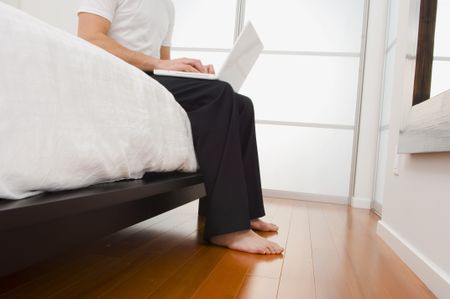 Using computer at end of bed.