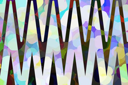 Varicolored abstract of triangular waves superimposed on rounded pastel polygons