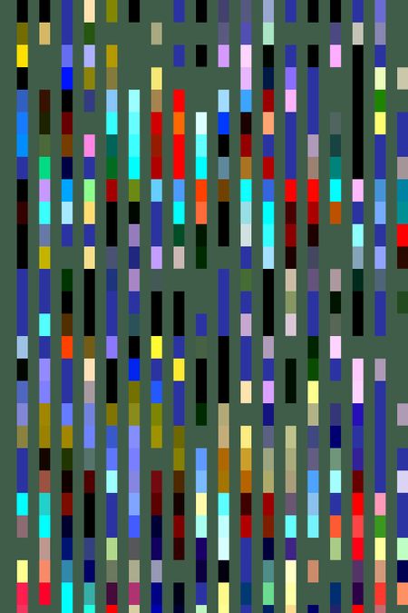 Varicolored geometric abstract mosaic of segmented parallel stripes on green, for decoration and background