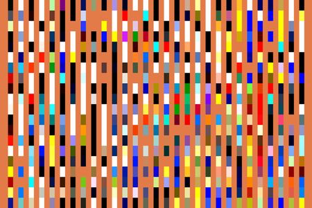 Varicolored geometric abstract of parallel solid bars of various heights on salmon background