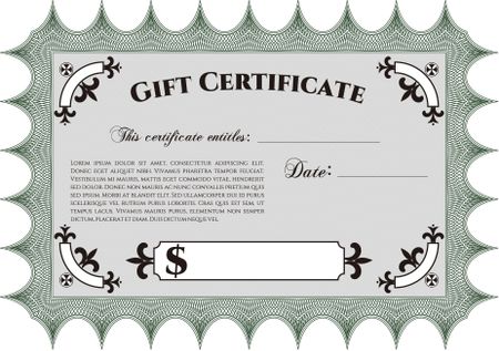 Vector Gift Certificate. Complex background. Excellent design. Customizable, Easy to edit and change colors.