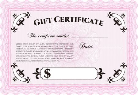 Vector Gift Certificate. With complex linear background. Beauty design. Border, frame.