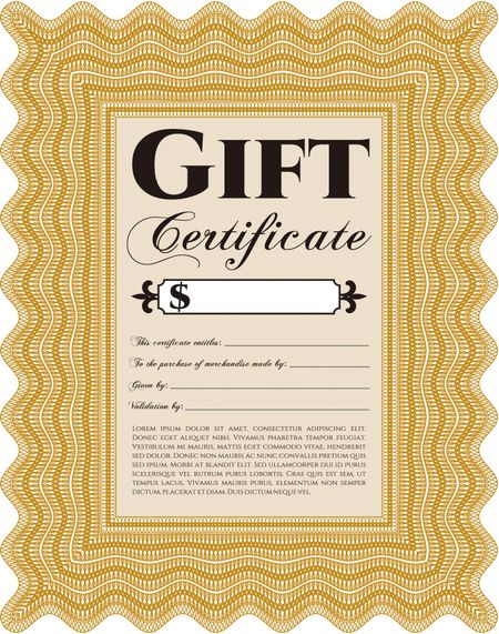 Vector Gift Certificate template. Excellent complex design. Vector illustration. With complex linear background.