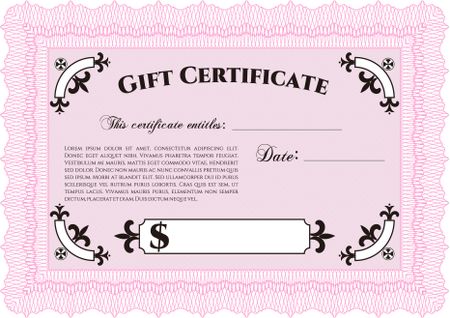 Vector Gift Certificate template. With guilloche pattern and background. Excellent complex design. Vector illustration.