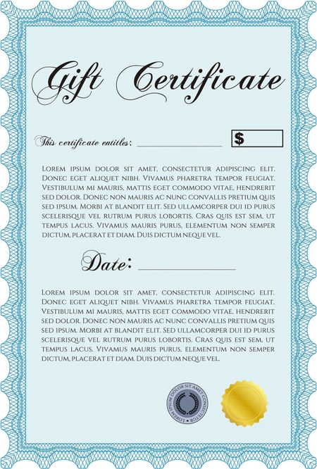 Vector Gift Certificate template. With guilloche pattern and background. Vector illustration. Elegant design.