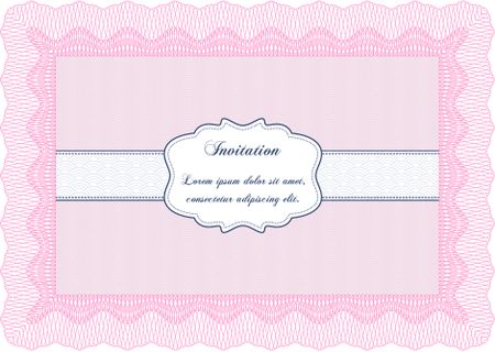 Vintage invitation template. Border, frame.Good design. With great quality guilloche pattern.