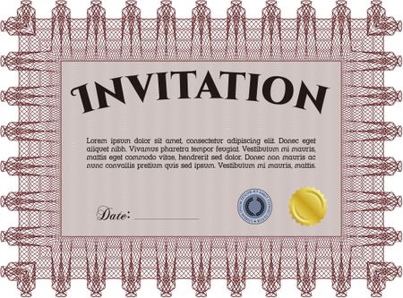 Vintage invitation template. Complex background. Border, frame.Elegant design.