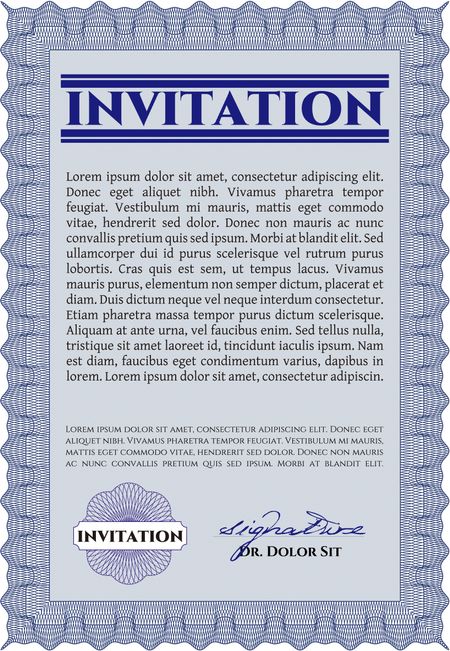 Vintage invitation template. With guilloche pattern. Retro design. Vector illustration.